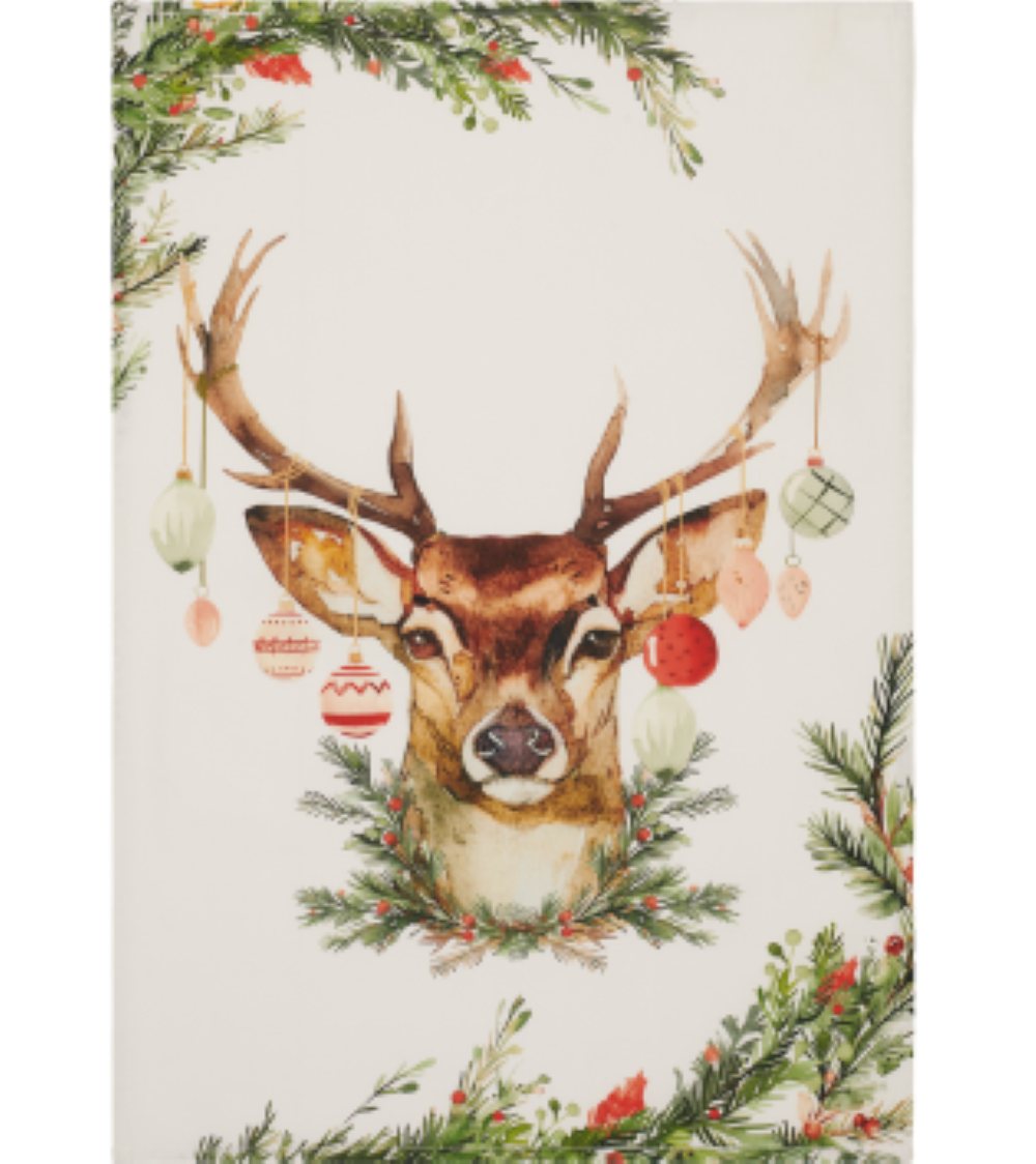 Weihnachtshirsch Geschirrtücher im Digitaldruck: Dieses charmante Geschirrtuch der Winter- und Weihnachtskollektion von Kracht zeigt einen stilvollen Hirsch im brillanten Digitaldruck in weihnachtlichem Design in Rot und Grün. Ein echter Blickfang in Ihrer Küche und gleichzeitig ein liebevolles Geschenk für spontane Einladungen während der Advents- und Weihnachtszeit. Das hochwertige Geschirrtuch aus reiner Baumwolle ist besonders saugfähig und strapazierfähig – ideal für den täglichen Gebrauch in der festlichen Saison.